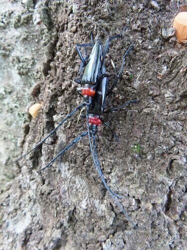 信仰上の理由から、『赤ヘル』には危害を加えられません。よく見たら、アカクビでした。木の下におがくずが沢山。樹木の内部を食い荒らします。事実の様です。綺麗な虫だと思ったのに。くわばら くわばら あなたの一票が私を支えています
